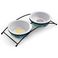 Этот функциональный комплект из двух универсальных круглых мисок на подставке выполнен из керамики высокого качества и отлично подходит для кошек и собак мелких пород. Такие миски идеальны как для воды, так и для корма разной консистенции. Изделие комфортно для питомца и легко моется под струей проточной воды с использованием моющих бытовых средств. А эффектный дизайн стилизованной под ковку подставки позволит ей стать украшением любого интерьера. Цвет: бирюзовый. Размер: d дна - 73 мм; d в верхней части - 100 мм; высота - 35 мм. Размер подставки - 250 х 110 х 45 мм. Объем: 2 х 0,12 л.