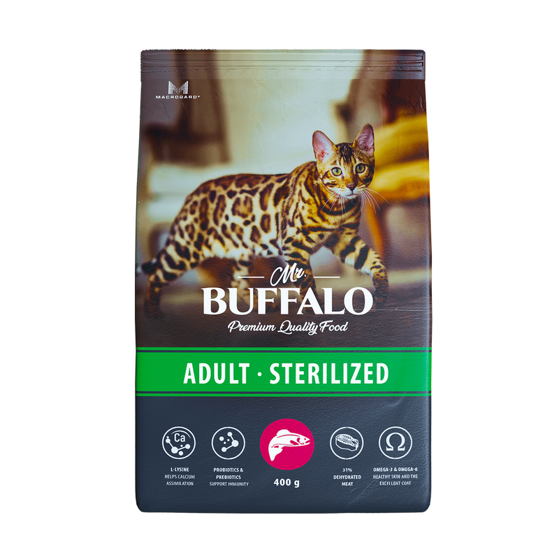 Одним из ключевых компонентов корма Mr. Buffalo является уникальное запатентованное вещество MacroGard® (МакроГард), которое является натуральным иммуностимулятором. Он активизирует естественные функции организма кошек и собак, помогает им бороться с инфекциями, поддерживает здоровое пищеварение, повышает сопротивляемость организма к бактериям, вирусам, грибкам и понижает риск различных заболеваний.
